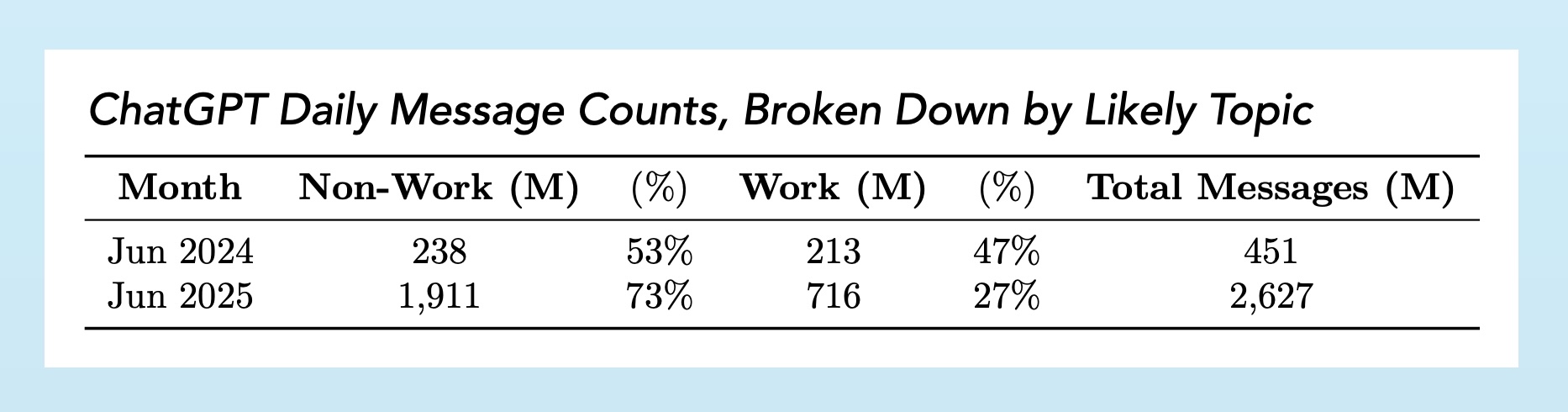 OpenAI’s report is excellent and provides a rare look at how people use ChatGPT2: ~80% of usage is for learning, searching, and writing. Often to help them perform their work!